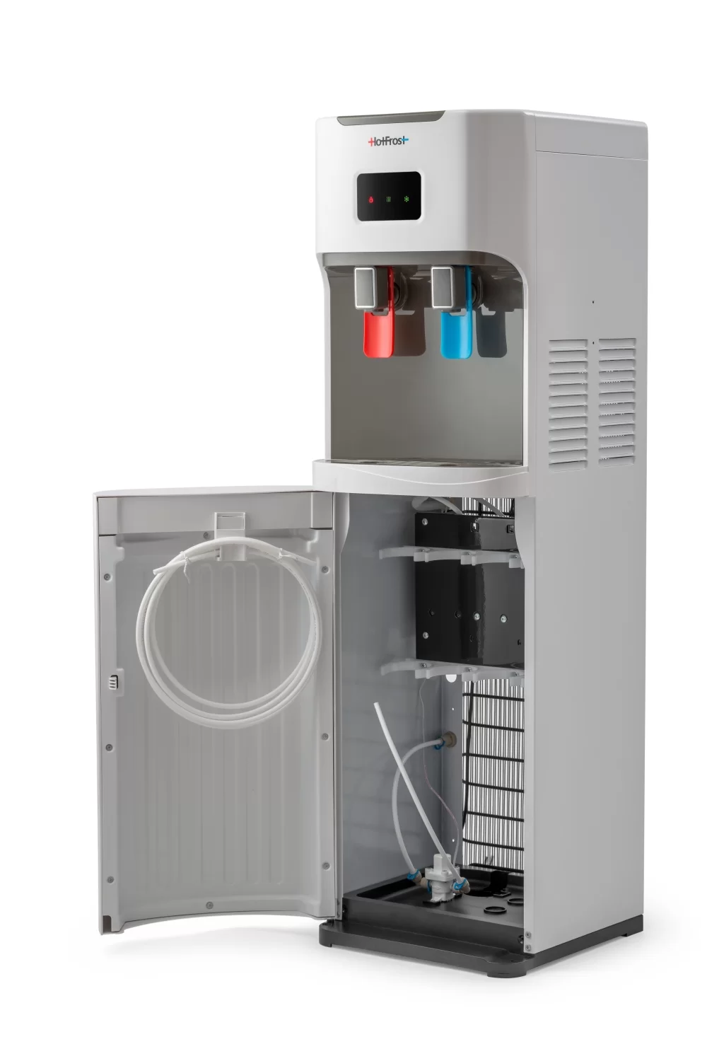Пурифайер HotFrost V115 PUF - це новий вид кулера напольного типу для глибокого очищення води. Такі прилади, на відміну від звичайних кулерів,безпосередньо підключаються до водопроводу,що автоматично роблять їх економічно вигідним рішенням для постійного забезпечення чистою водою як офісів, так і приватних будинків за допомогою 4-х ступенів очистки. Вони відрізняються досить високою швидкістю фільтрації, простотою у використанні, надійністю і довговічністю, а функції нагрівання та охолодження, як у традиційного кулера, зроблять побут простіше і затишніше.