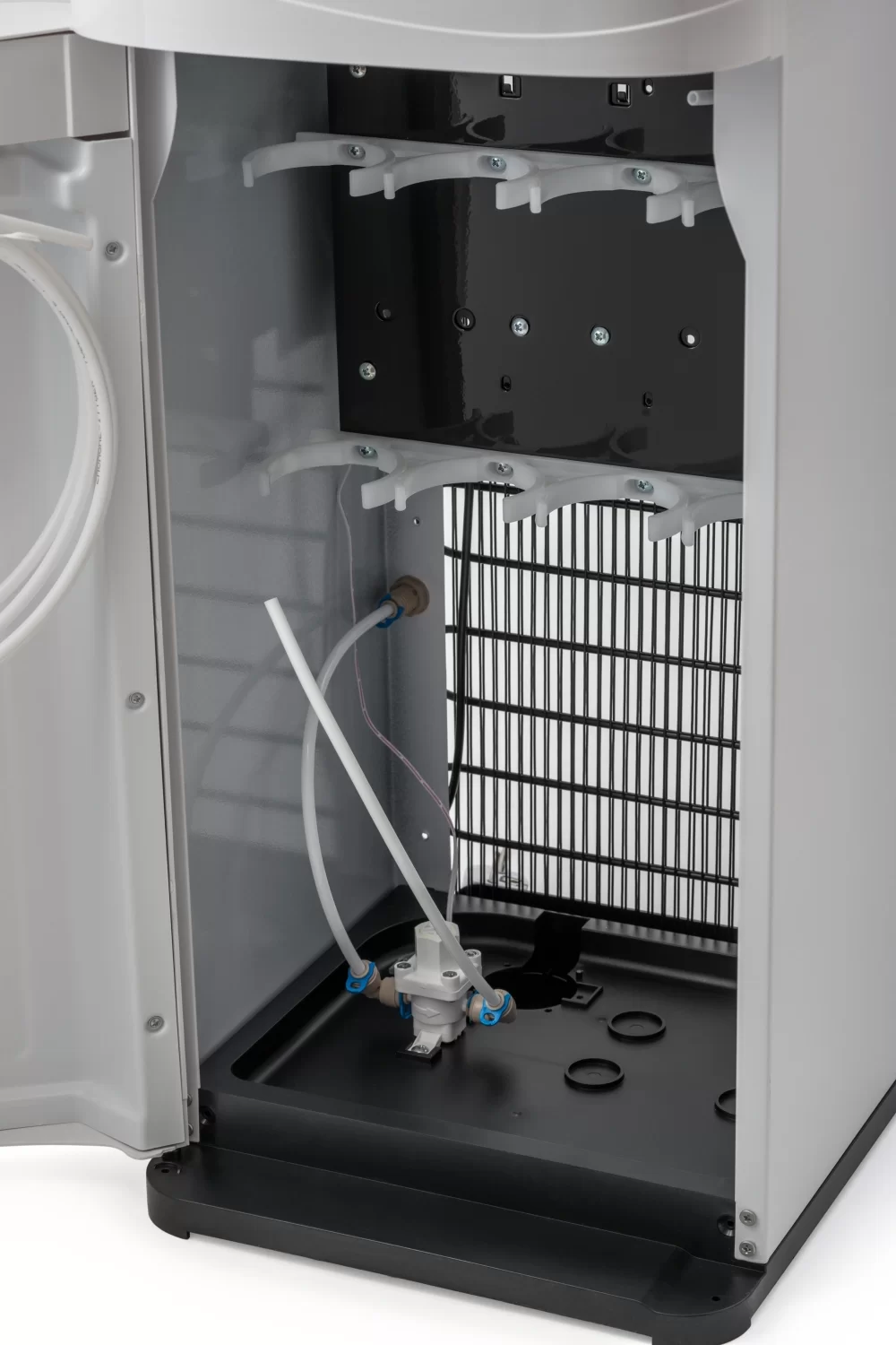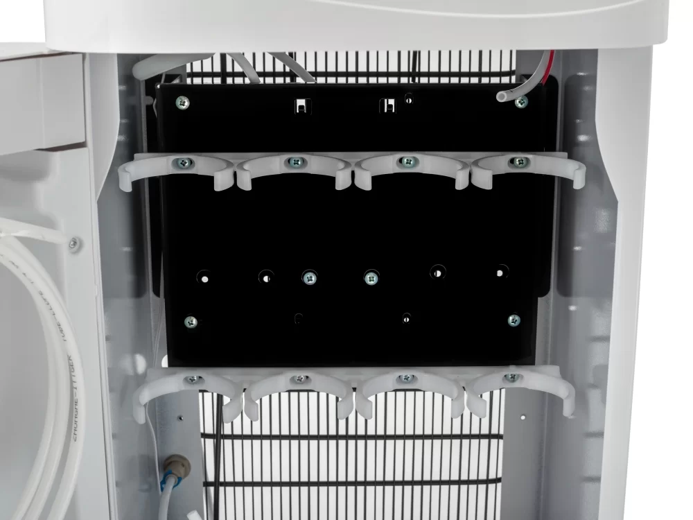Вода з-під крана по трубці потрапляє в систему фільтрації і проходить очистку. Далі очищена вода потрапляє в резервуар для чистої води, яка розташована під верхньою кришкою пурифайер. З резервуара вода надходить в баки холодної і гарячої води. Температура в баках гарячої та холодної води підтримується на постійному рівні за допомогою електронних датчиків, що дозволяє отримувати негайний доступ до холодної і гарячої води.