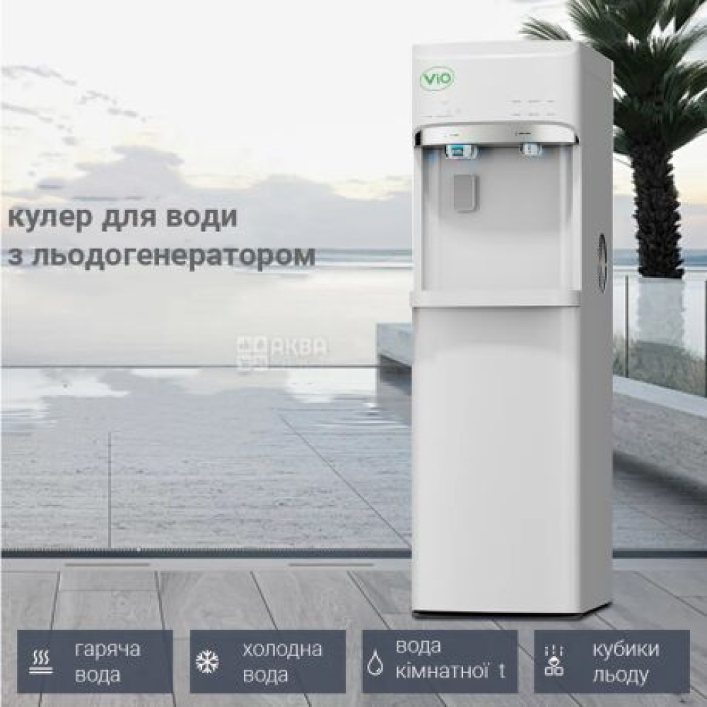 ViO X628 FCBI White – це сучасний кулер для води, який поєднує зручність нижнього завантаження бутлів, ефективне компресорне охолодження та функцію льодогенератора. Завдяки цьому пристрій не лише забезпечує вас гарячою та холодною водою, але й дозволяє готувати до 10 кг льоду на добу, що робить його ідеальним вибором для дому, офісу, кафе, ресторанів або інших комерційних приміщень.