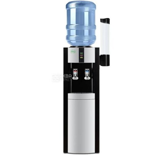 Кулер оснащений двома кранами типу “натиск кружкою”. Це найбільш гігієнічний і зручний варіант подачі води — не потрібно торкатися руками, достатньо лише підставити кухоль або стакан.
